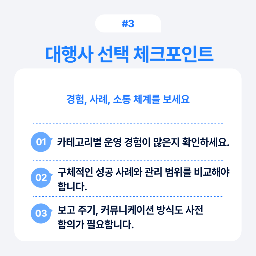✅ 따라서 대행사 선택 시 다음 체크포인트를 확인하세요.