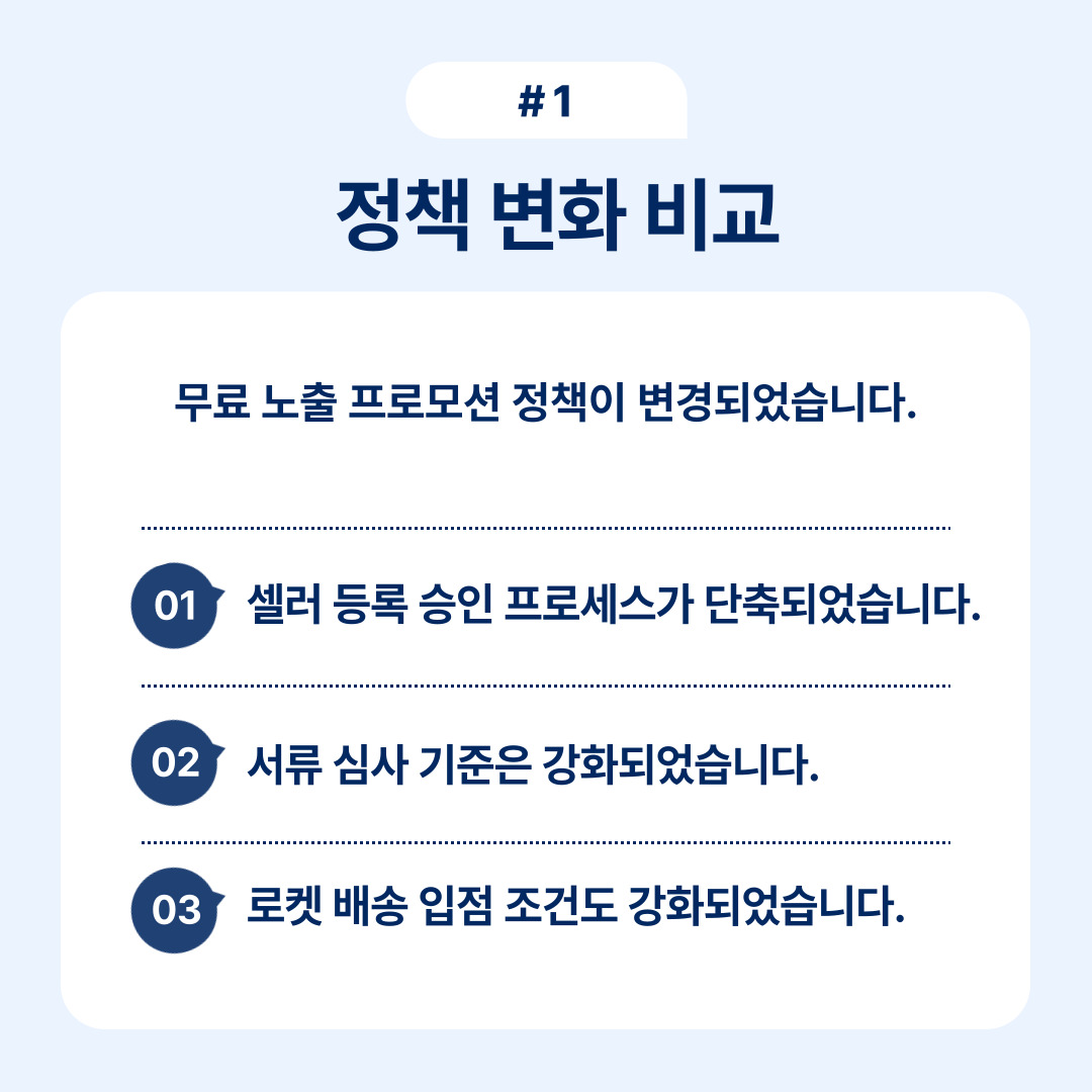 셀러 등록 승인 프로세스가 1-2영업일로 단축된 것은 긍정적이지만, 서류 심사 기준은 오히려 강화되었습니다. 서류가 불완전할 경우 자동 탈락되는 시스템으로 변경되어 초기 입점 준비의 정확성이 더욱 중요해졌습니다.