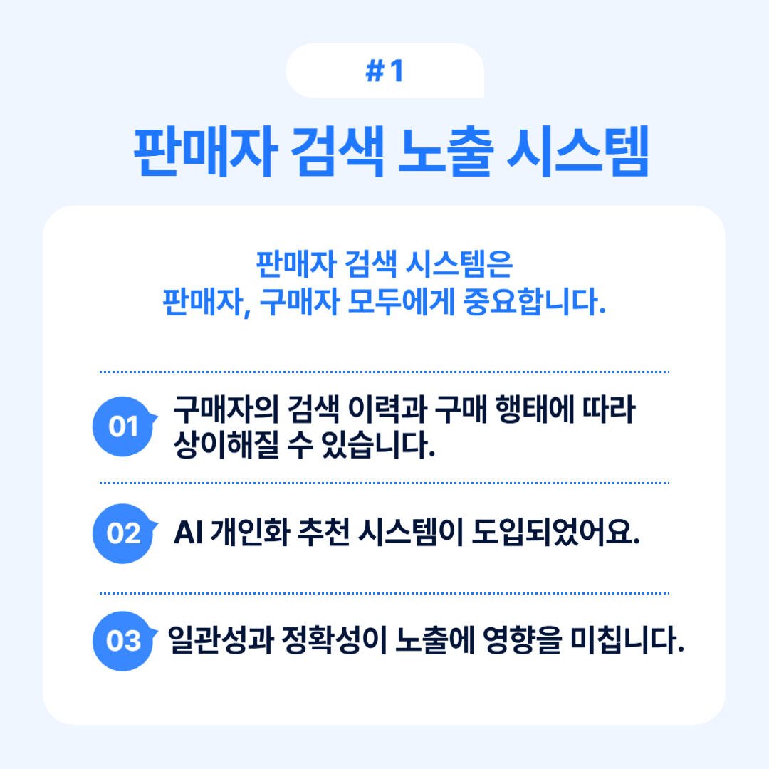 - 판매자 정보의 정확성과 일관성이 검색 노출의 기본