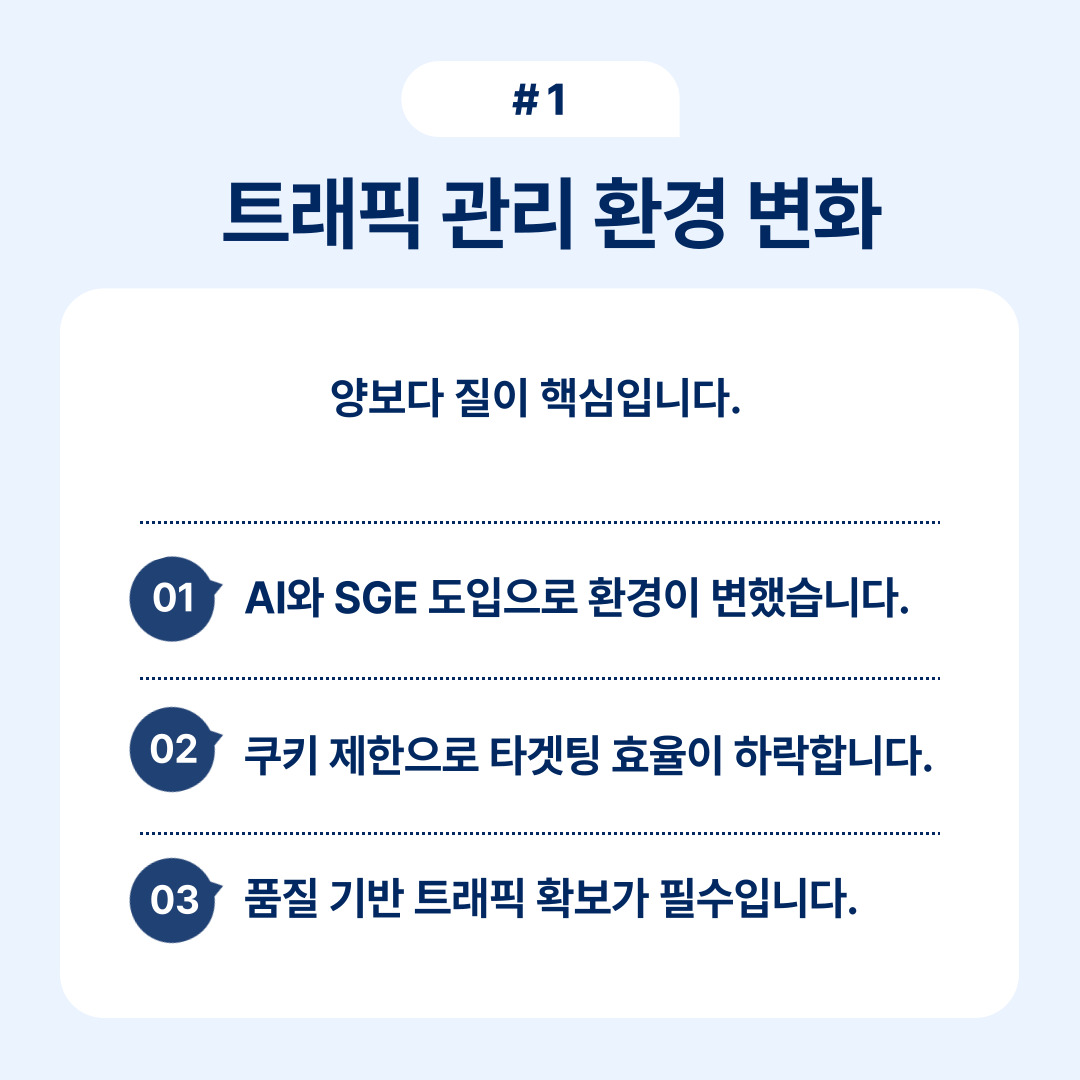 트래픽 관리의 패러다임이 완전히 바뀌었습니다. 더 이상 ‘양’이 아닌 ‘질’이 핵심이 되었죠.